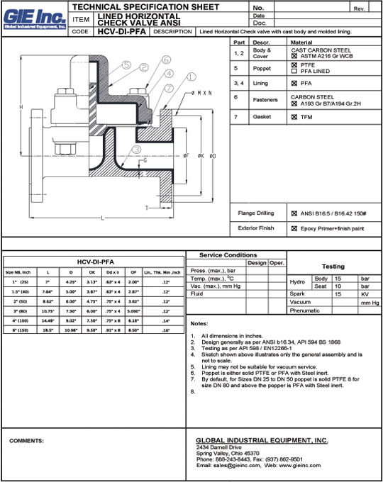 Horizontal Check Valve CLICK HERE TO DOWNLOAD PRODUCT LITERATURE The unsurpassed performance and dependability of GIE, Inc. valves are the culmination of up-to-date technical know-how combined with its modern automated system of production, which is the latest in the valve industry today.