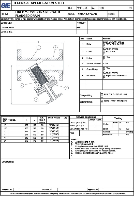 Lined Y Type w/Flanged Drain